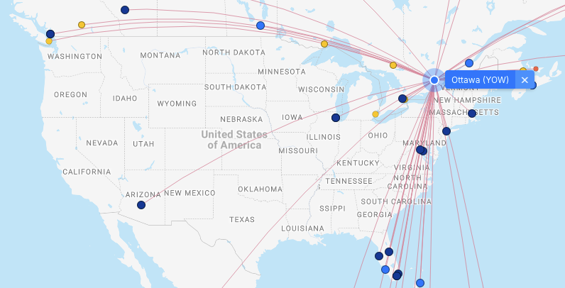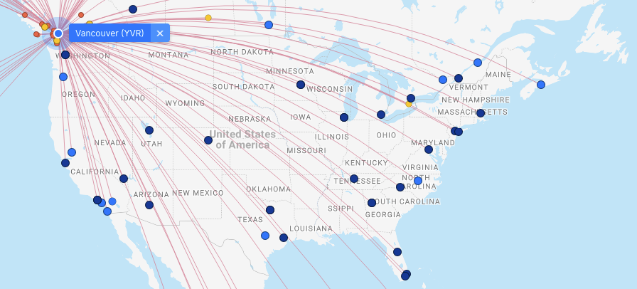 While Canadian airlines are canceling routes (WestJet also announced several cancellations recently), US airlines are adding a few on their side.