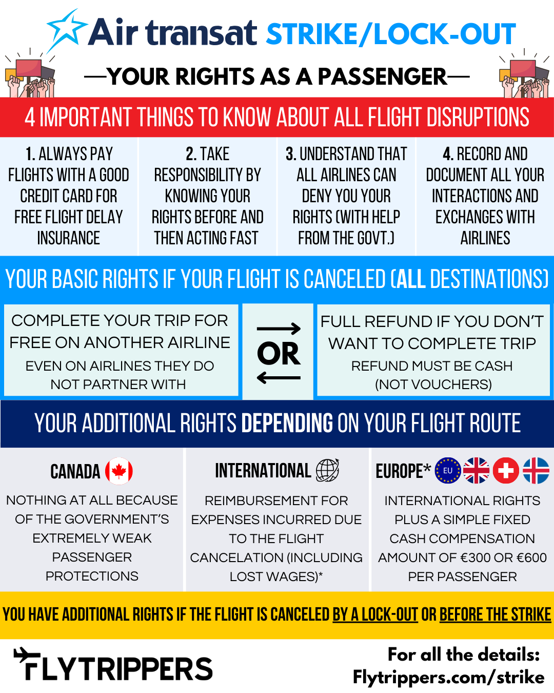 Air Transat could also lock out its pilots instead of there being a strike, but that would have an identical effect (the only difference is it would give you more rights). So I’ll mainly use the term “strike” in this guide, to lighten and shorten everything.