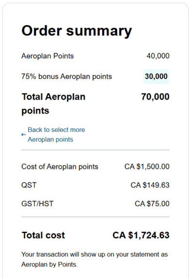 - It’s not often recommended to buy Aeroplan points, even with an 75% bonus