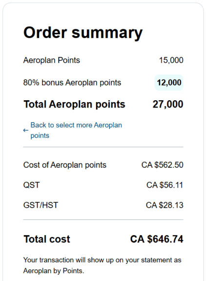 Here are the highlights of the current promo to buy Aeroplan points: