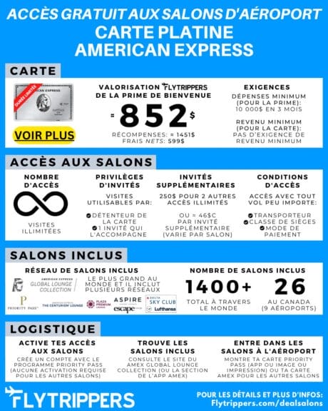 On a un guide complet sur l’avantage de salons d’aéroport Amex Platine avec tous les détails.