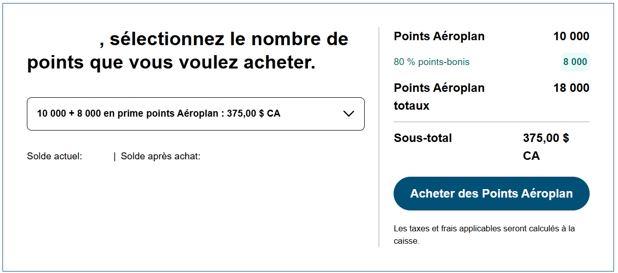 - Sélectionne la quantité de points Aéroplan que tu souhaites acheter