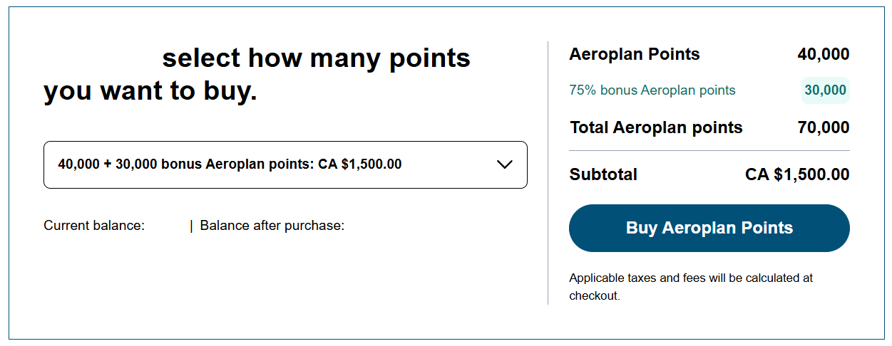- Sélectionne la quantité de points Aéroplan que tu souhaites acheter