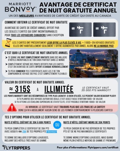Oui, le certificat de nuit gratuite Marriott Bonvoy vaut 35 000 points, mais tu as quand même un peu de flexibilité.