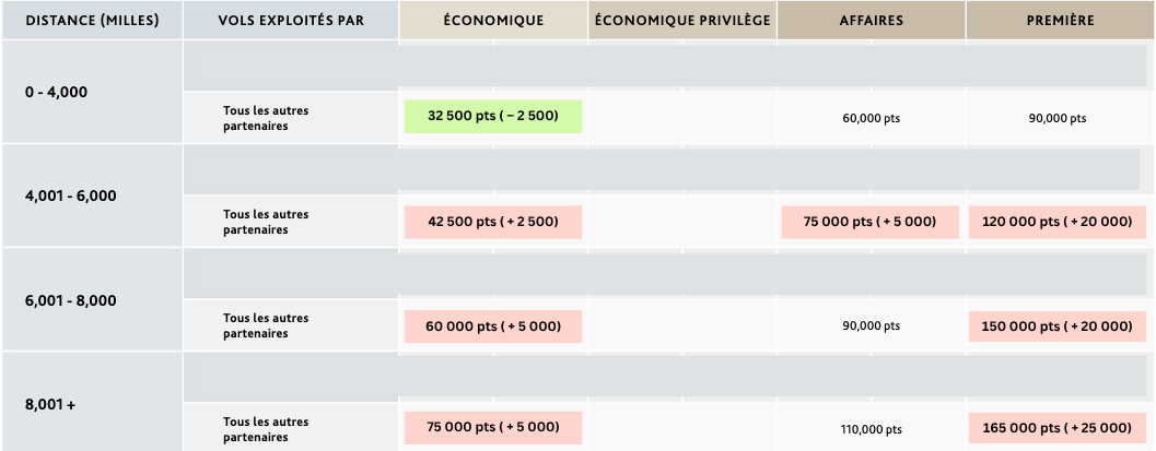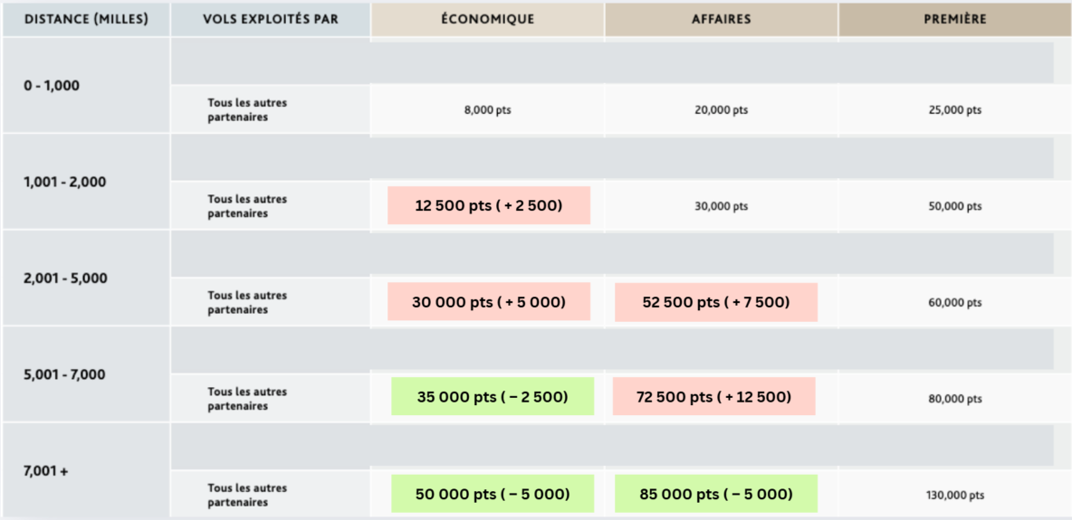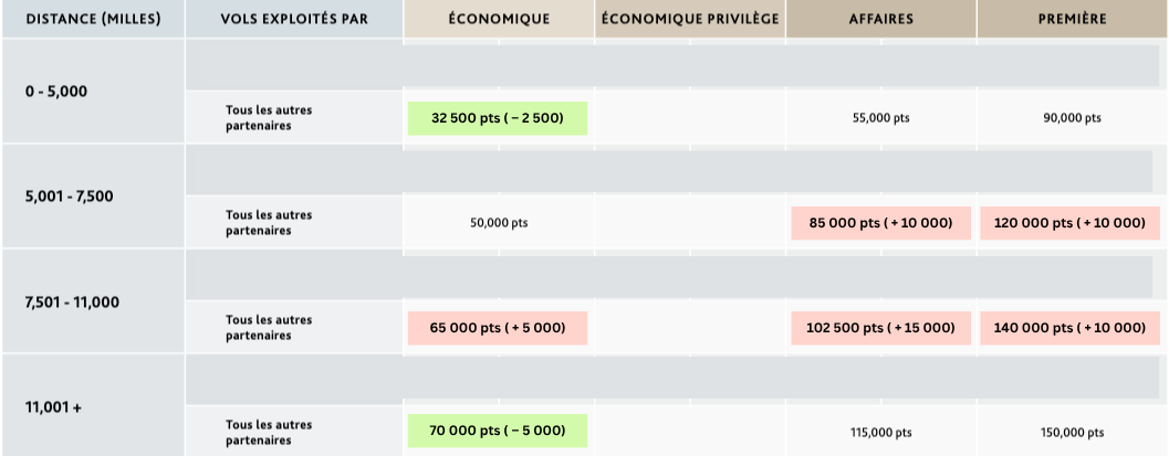 C’est également bien qu’ils donnent un préavis; certains programmes (on te regarde, Avios!) aiment ajuster les prix avec une entrée en vigueur immédiate qui ne permet pas de profiter des prix avant la hausse.