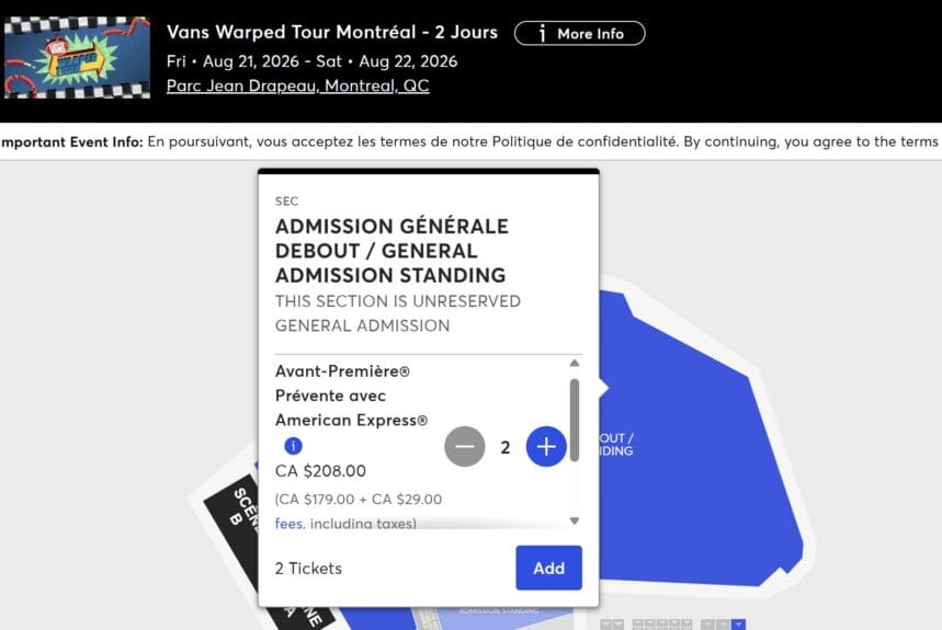 Tu peux acheter des billets pour le Vans Warped Tour 2026 sur le site officiel ou sur des sites de revente comme StubHub et Vivid Seats (ce sont les 2 que j’utilise très régulièrement moi-même).