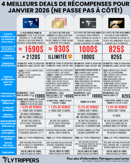 Top 4 meilleures offres de cartes de crédit (janvier 2026) |