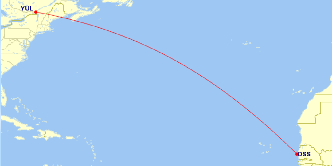 - Entre Montréal (YUL) et Dakar (DSS)