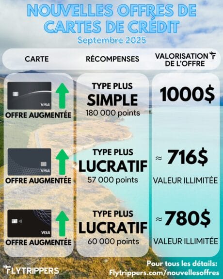 Les 2 meilleures cartes TD ont maintenant une nouvelle offre augmentée! Pour la 1re, c’est même une offre record (la plus haute jamais vue sur cette carte)! Pour la 2e, c’est une petite augmentation, mais ça reste que c’est sa 1re augmentation depuis très longtemps (et ça pourrait être à considérer même si tu n’es pas admissible selon les règles d’admissibilité aux primes Aéroplan officielles).