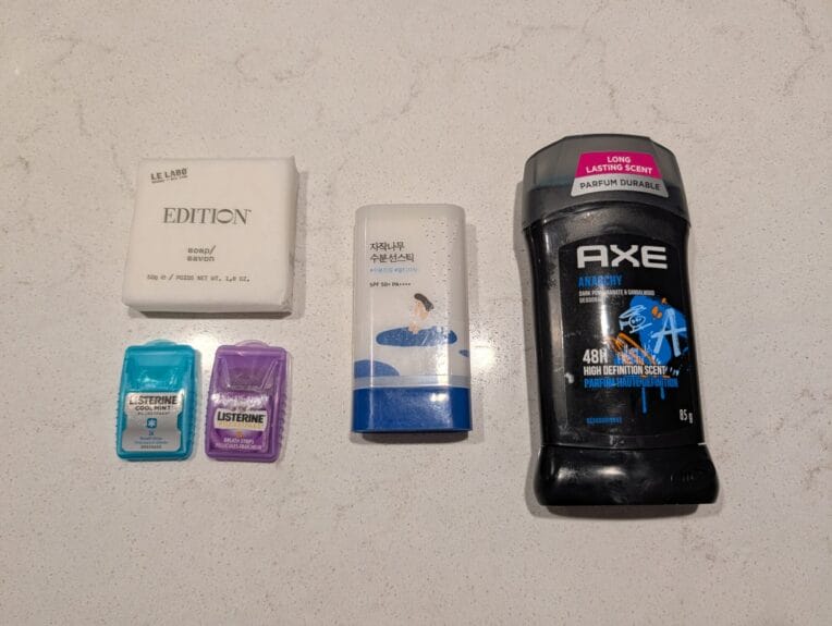 Quand j’ai besoin de davantage de créneaux de liquides, le dentifrice et le rince-bouche sont évidemment les meilleurs à sacrifier (les moins chers et les plus faciles à acheter dans n’importe quel pays).