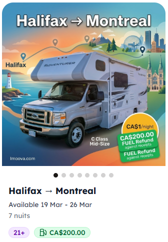 Les deals de relocalisation de VR impliquent de faire plus de kilométrage que si tu prenais l’avion vers l’Ouest canadien ou les Maritimes et que tu louais un VR rendu là-bas… mais c’est incroyablement moins cher. Comme tout dans les voyages, moins c’est pratique et simple, plus c’est abordable!!! Pas plus compliqué que ça!