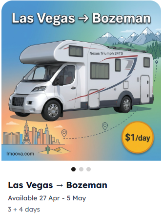 Les deals de relocalisation de VR proposés par Imoova sont aussi peu que 1 CAD par jour. C’est vraiment abordable pour ceux qui adorent les véhicules récréatifs ou qui veulent essayer ça pour pas cher! Ce n’est pas pour tout le monde, et c’est plus de route que si tu loues à ton arrivée à ta destination, mais le but des VR est justement de profiter de la route!