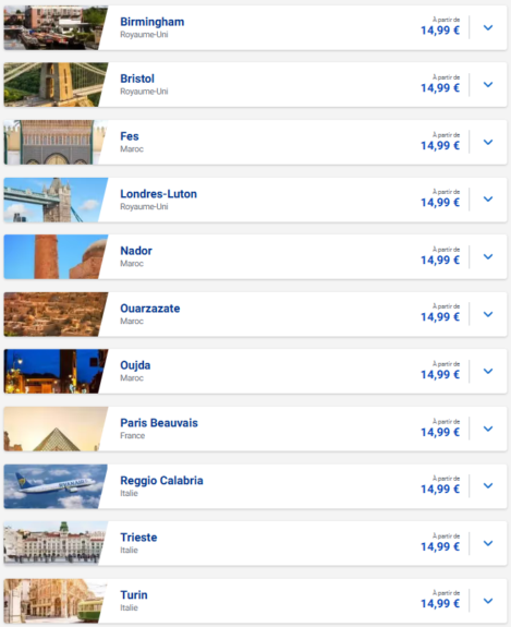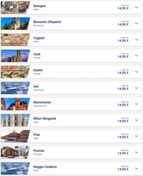 Vente Ryanair à partir de Paris: