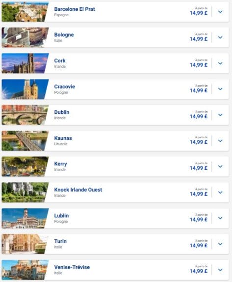 Vente Ryanair à partir de Londres: