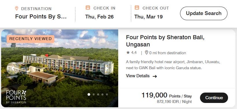 The certificate is worth 35,000 points, but you must redeem it all for a single hotel night (you can’t use the certificate for the 5-night stays in Bali that cost 35,000 points total).