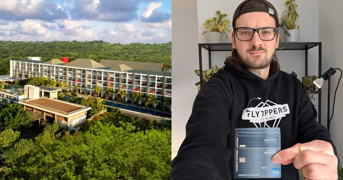 Featured image: Four Points by Sheraton Bali, Ungasan & my household’s 4 Marriott cards (photo credit: Marriott & Andrew D’Amours/Flytrippers, edited by Flytrippers)