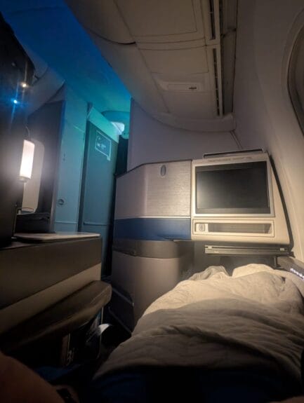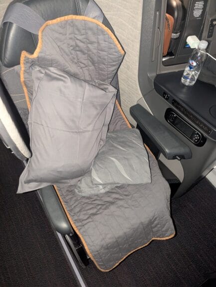 The seat itself was very good, but the only remaining selection was close to the aisle, so there was a bit less privacy than what I’m used to. It’s still a very good bed, but for sure I obviously prefer the other alternating seats farther from the aisle when I’m solo (and by the window ideally).