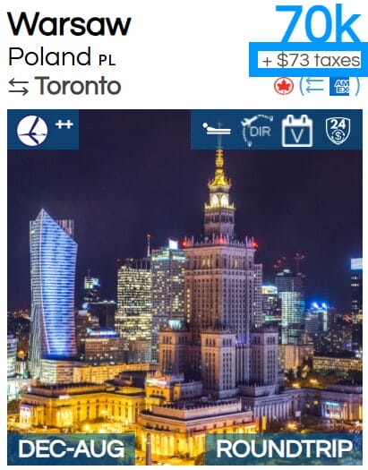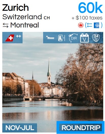 If you want more options and/or you’re ready to pay a bit more for the luxury of business class, other programs (not Aeroplan) sometimes have high taxes/fees. We’ll also list deals with slightly higher taxes/fees to give you more choice.