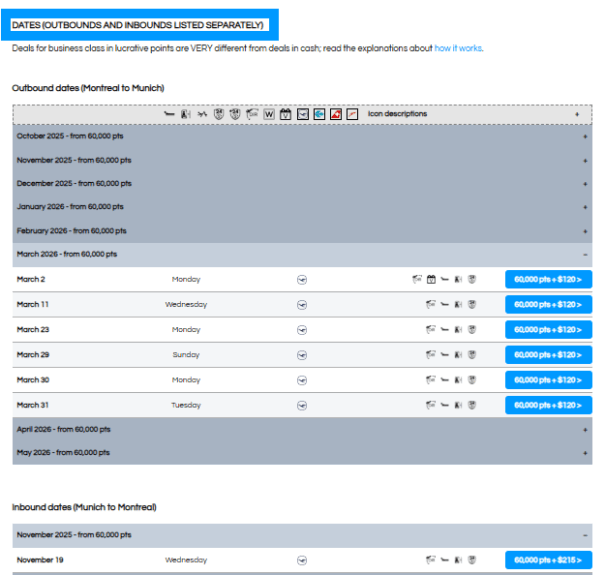 In cash, we can put nice direct links that take you directly to the right date… we can’t always do that for deals in points, because the technology of some rewards programs simply doesn’t allow this type of link.