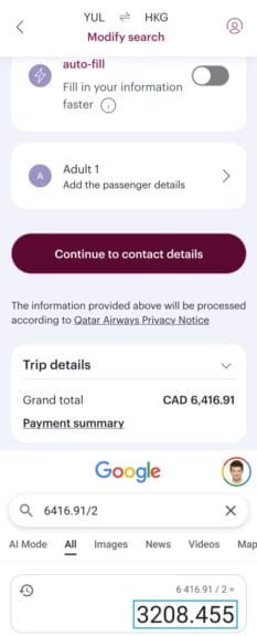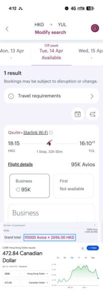 This particular Qsuite route was $473 (Montreal-Doha is in the $300s). It’s literally the most I’ve ever paid (by far). So that’s why I get a value of “just” 3.7¢/pt.