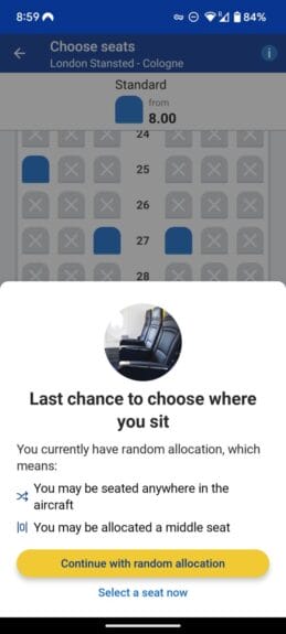 But that’s for airlines that let you choose your seat for free at check-in. More and more airlines are still obviously giving you a free seat at check-in, but they assign a random one automatically without letting you choose.