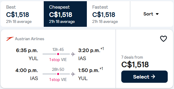 If you do like 99% of people and sadly book your flights on 1 single ticket, it’ll cost you 1518 CAD if you want a maximum of 1 stop. Direct flights don’t exist (get over always wanting direct flights, if you want to be a travel pro 😉)!