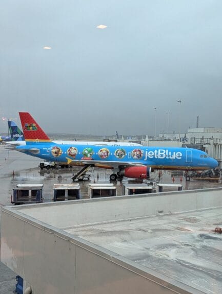 The special livery is to highlight a partnership with Nintendo. They even did a pop-up activation at JetBlue’s biggest hub, New York’s JFK airport: a gaming station for the launch of the Nintendo Switch 2 console.