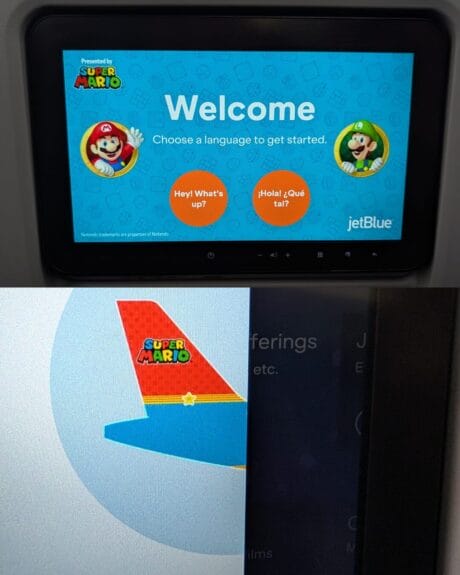 Inside, the screen had Super Mario elements too, but nothing else (sometimes airlines push the special theme further than that, as I’ll show you below).