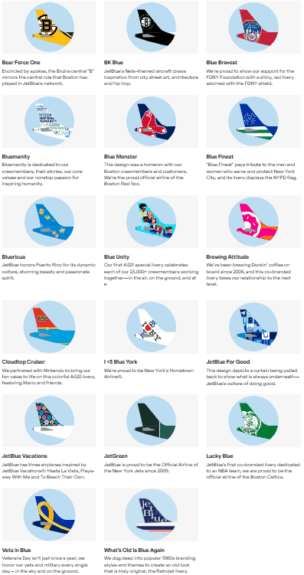 JetBlue is actually one of the airlines with the most special liveries. It would be great if others went all in like them; for example, JetBlue even has a page on its website that lists all the liveries (be careful not to throw up when seeing the Bruins one).