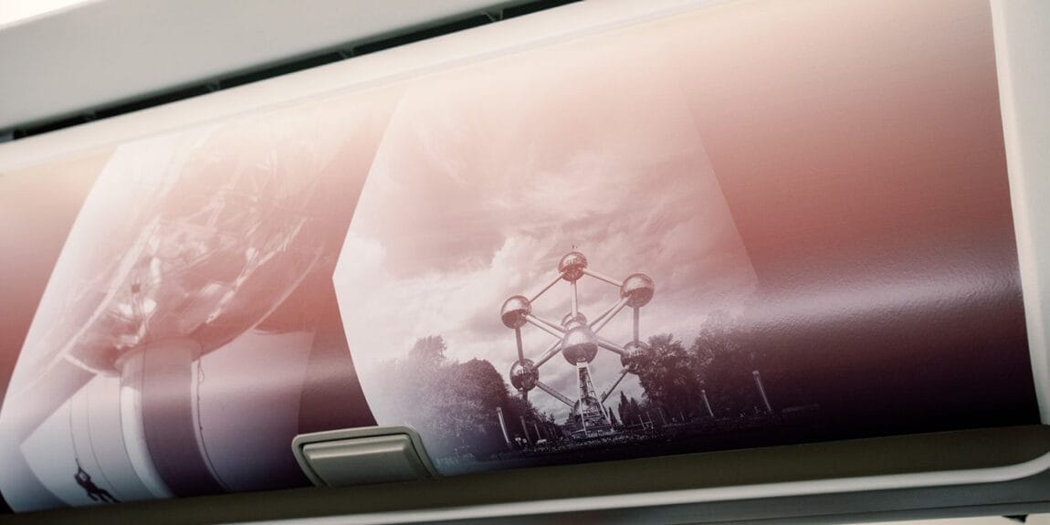The Atomium logo also appears on the engine nacelles and on the aircraft’s belly. Even the aircraft’s interior is special, whether it’s on the forward bulkhead, the seat fabric, or the overhead compartments.