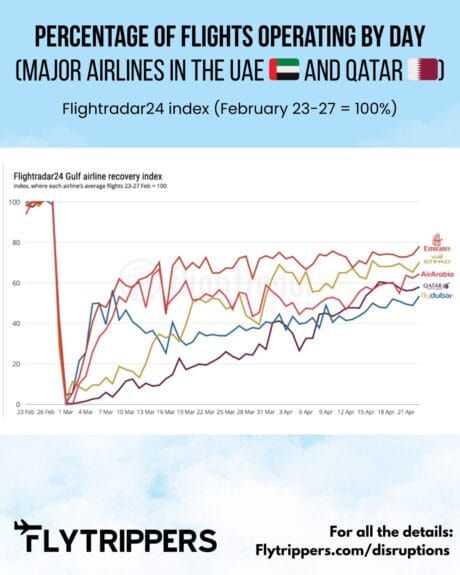 Most airline routes in the major Gulf hubs have resumed normal operations, as Flytrippers’ other co-founder shared just before his own transit through Qatar last week.