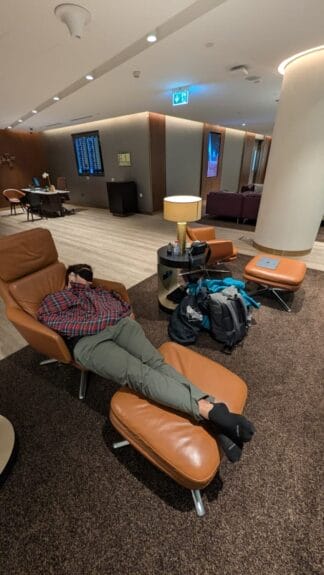 We tried to use their relaxation rooms for our 4-hour layover, but they were all full. So we grabbed some lounge chairs and managed about 2 hours of sleep there.