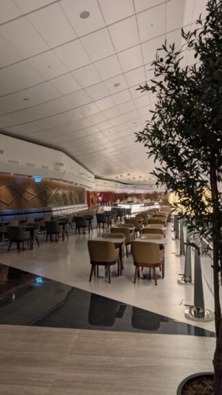 The (massive) lounge was empty when we got there and got slightly busier in the evening, but nothing compared to the usual North American lounge chaos (like everything else in the travel world, it’s so much better elsewhere).