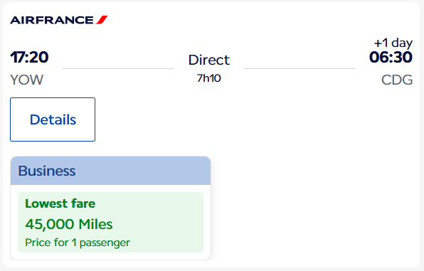 - Gives 1 Canada-Europe flight in business class (one-way)
