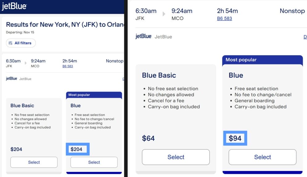 JetBlue charges much more at the last minute, regardless of the destination.