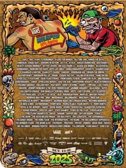 To give you an idea of the lineups, here are the ones for all 3 Vans Warped Tour events in 2025.