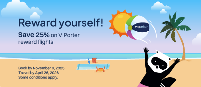 There’s a VIPorter points redemption promotion that gives you 25% off flights paid for in points (and also with the Dollars & Points option if you’re missing points). It’s an excellent time to redeem the points you’ve already earned with the BMO VIPorter World Elite Mastercard and the BMO VIPorter Mastercard.