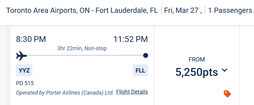 And that’s even to go as far as Fort Lauderdale, in Florida! That’s pretty amazing at 5,250 points. I might even change my plans for my annual Miami Art Week trip and book this instead of flying there with the JetBlue challenge; it’s crazy cheap.