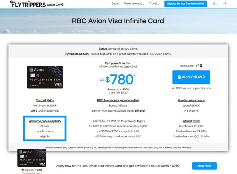 We appreciate if you use our secure links at absolutely no cost to you — like through this link for the RBC Avion Visa Infinite Card.
